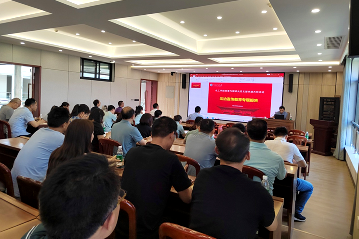 本网讯 为深入学习宣传贯彻习近平新时代中国特色社会主义思想,贯彻落实党的二十大精神,5月28日下午,化工学院与国资处联合开展共建共创活动,邀请学校宣讲团专家、文法学院副院长谢珺在综合实验楼507会议室做专题宣讲,国有资产与实验室管理处处长马建宏主持会议,百余名党员、教职工参加了报告会。