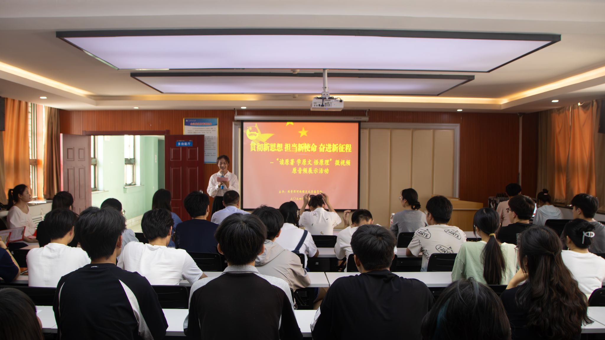 本网讯 (李智慧 高层稳)为深入学习宣传贯彻习近平新时代中国特色社会主义思想和党的二十大精神,切实把广大团员青年的思想和行动统一到党中央决策部署上来,进一步提升共青团引领力、组织力、服务力,结合我校共青团实际和青年特点,5月26日,校团委在大学生活动中心401举办“读原著 学原文 悟原理”微视频 原音频展示评选活动。党委宣传部、学生处、教务处、校团委相关负责人担任本次活动评委。校学生会骨干、青马工程培养班学员参加本次活动。