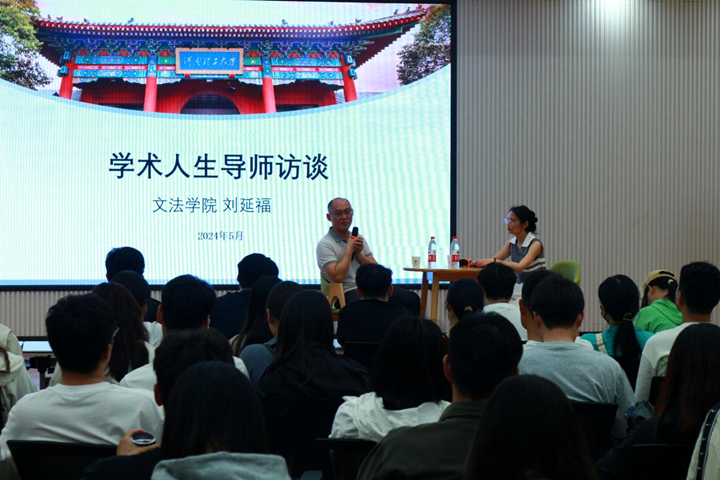本网讯(通讯员 李昱霖)领悟学术风采,分享人生智慧。为进一步弘扬学术精神,引领广大学生感悟人生智慧,提高研究生科研创新能力和综合素质,5月7日下午,文法学院教授刘延福应邀出席由校党委研工部、研究生院主办,文法学院承办的第十六期“学术人生”导师访谈。此次活动在材料学院2103多功能厅举办,研工部、文法学院相关负责人与百余名研究生共同参加。