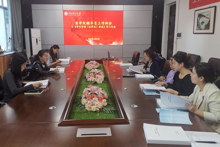 本网讯(通讯员 李悦)为全面贯彻落实立德树人根本任务,进一步加强学生管理工作,5月6日上午,医学院在该院223会议室召开辅导员工作例会之《学生管理(本科生)制度》交流学习专题会议。会议由该院党委副书记朱丹主持,所有专兼职辅导员参加。
