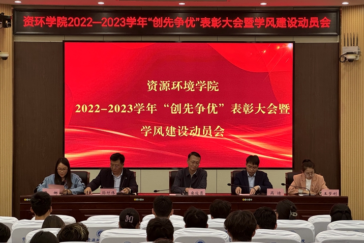 本网讯 (通讯员 李梦杰 蓝燕)为表彰先进、树立典型,展示风采,促进学生健康成长成才,4月16日下午,资环学院在学院第Ⅰ学术报告厅举行了2023年度“创先争优”表彰大会暨学风建设动员会。院党委书记桑俊勇、党委副书记孙付伟、副院长高迪及全体辅导员与获奖学生代表和各年级学生骨干参加会议,会议由院党委副书记孙付伟主持。