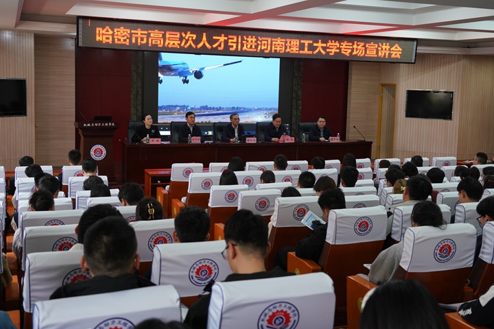 本网讯(通讯员 周申华)3月22日下午,哈密市高层次人才引进专场宣讲会在我校机械学院205会议室举行。哈密市政协党组成员、副主席、市委组织部副部长、市人社局党组副书记、局长钟锐钧及市直部门和区县相关负责同志,河南省大中专学生就业服务中心相关负责同志,新疆农业大学副校长刘志怀、学校副校长程伟出席会议并讲话。会议由招就处副处长曹中秋主持。