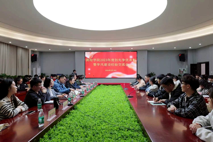 本网讯(通讯员 丁昱杰 拓海燕 刘珍珍/文 罗欣婷/图)表彰先进,激励创优,传递青春正能量,谱写时代新篇章,3月19日下午,测绘学院2023年度“创先争优”表彰暨“学风建设”经验交流会在该院101会议室举行。院党委书记张红霞、党委副书记郭学鹏及全体辅导员与获奖学生代表和各年级代表参加会议,会议由该院党委副书记郭学鹏主持。