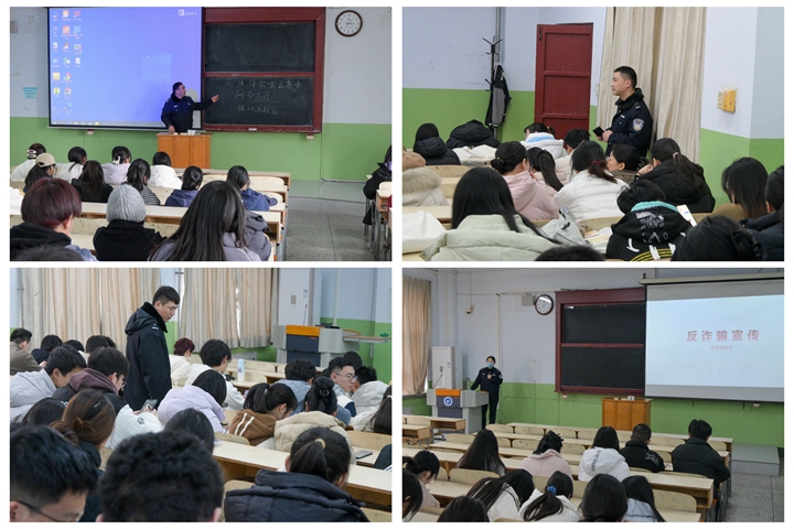 本网讯(通讯员 李悦 韩若冰)为了提高学生的防诈骗能力,3月5日下午,在我校北校区二号教学楼,一场别开生面的防诈骗宣讲活动正在热烈进行。此次培训由焦作市解放区民生街道派出所的民警主讲,旨在提高广大学生对诈骗犯罪的防范意识,切实保护学生的财产安全。
