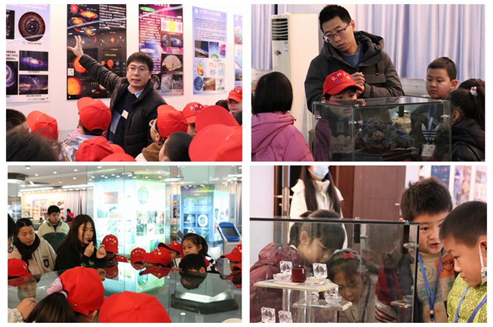 小记者们手持队旗,在工作人员的精心组织下分批有序进入展馆。志愿者们以弘扬新时代雷锋精神和“科普十条”精神为宗旨,以地球科学馆展厅大量天然实物标本、模型、图片、简明图表为依托,对地球演化、痕迹化石、矿物与矿产资源3个部分的地球科学馆展区进行了详细讲解,孩子们听得津津有味,不时发出惊叹和提问,现场氛围热烈而活跃。