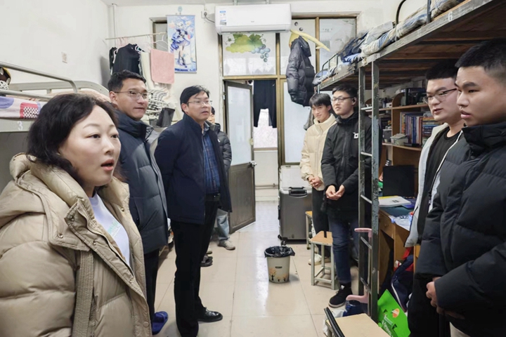 春回天地间,奋斗正当时。走访中,该院领导与学生们亲切交流,仔细询问学生是否考研、目标高校、学习准备,勉励他们坚定信心,刻苦复习;对于已就业的学生,该院领导也关心他们的就业计划、目标岗位等,提醒同学们要及早规划,扎实做好就业准备。随后,该学院老师们分组走访学生宿舍,详细了解学生新学期计划、发展目标,对宿舍卫生、安全隐患、生活习惯等进行深入细致的检查和督促工作。王伟超激励同学们,一要珍惜大好时光,坚定理想信念,新的一年鼓足干劲,全力以赴,让2024成为大有可为、大可作为的全新一年;二要脚踏实地,团结上进,营造安全卫生高雅的宿舍文化,学院将更加注重宿舍文化建设、文明宿舍评比等活动;三要树立“开局就是决战,起步就是冲刺”的理念,全身心投入学习,跑赢人生新阶段。