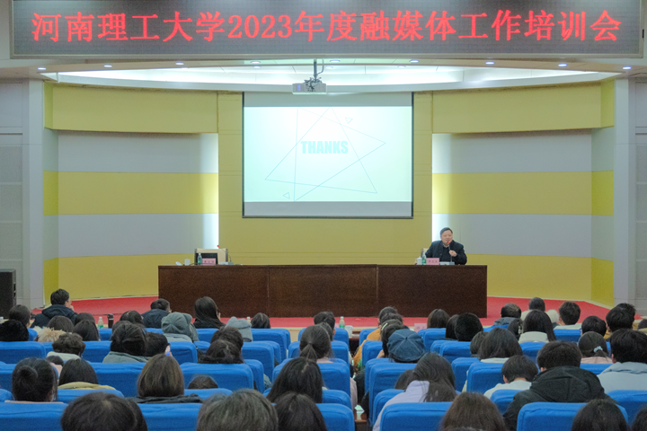 本网讯(通讯员 郭曜瑜 李美选)12月22日下午,学校2023年度融媒体工作培训会在力行楼学术报告厅举办。培训会邀请河南教育新闻中心副主任黄发强、河南策知科教有限公司产品经理王仁杰作辅导报告,学校各单位网站、新媒体平台负责教师及学生通讯员等270余人参加培训,党委宣传部副部长许文立主持会议。