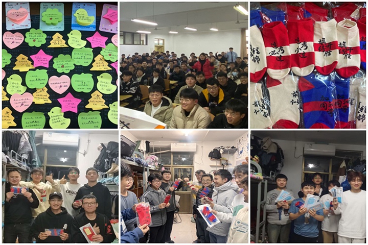 当晚,辅导员代表学院为考研学生赠送了印有“前程似锦”“金榜题名”“旗开得胜”等祝福语的状元袜及口罩,并书写了饱含祝愿和鼓励的便利贴送到学生手中——“一路无悔,一‘研’为定”“放平心态,放手一搏”“要努力,但不要着急,繁花似锦、硕果累累,都需要过程”“窗外是风景,笔下有前途,低头是题海,抬头是未来……”一句句暖心的话语,一段段温馨的祝福,是教师对学生最真切的期许和鼓励。