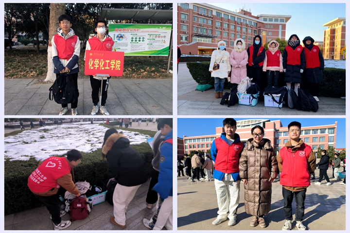 在考生入场之前,化工学院师生志愿者们早早来到考场外积极准备助考物品,在考生们陆续到达后,志愿者们指引考生们按照要求存放个人物品,并细致入微地指引考生们按照秩序顺利进入考场参加考试。同时,师生志愿者们还为每一位考研学子送去了最真挚的祝福,祝愿他们能够发挥出自己最好的水平,写下令自己满意的答卷。在考试期间,志愿者们耐心地等待在考场外,照看存放物品。考试结束后,帮助考生找到自己存放的物品,做好相关后续服务工作。不少考研学子纷纷表示,虽然天气寒冷,但志愿者们热情的帮助和鼓励让他们感受到了学院的温暖,希望自己能够取得好成绩,不辜负学院的殷切期望。