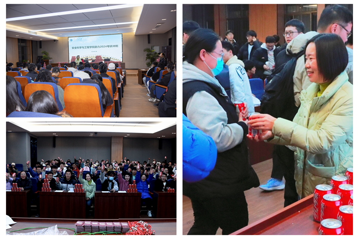 岁月不负少年意,旗开得胜终有时。2024年全国硕士研究生招生考试即将到来,安全学院2020级学子全力备战、奋力冲刺,为增强该院考研学子的备考信心,缓解备考压力,12月1日下午,该院为“研”途上的学子送去“金榜题名”加油包,该院党委副书记李静、团委书记吕宜倩、部分辅导员代表安全学院全体领导与老师为考研学生发放礼品并送上美好的祝福。