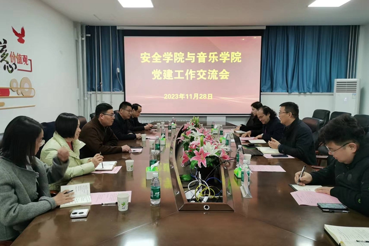 本网讯(通讯员 李团结)为进一步凝聚党建引领力,高质量加强基层党组织建设,探索党建工作新思路,11月28日下午安全学院党委与音乐学院党委开展了党建工作交流会。座谈会在音乐学院101会议室召开,安全学院党委书记刘文军、院长魏建平,音乐学院党委书记贾宝先,以及两个学院的班子成员参会。会议由音乐学院副院长马安平主持。