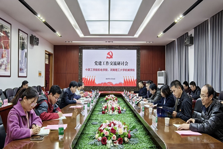 本网讯(通讯员 刘琳)11月16日下午,中原工学院机电学院党委书记陈燃一行来机械学院调研交流党建“双创”工作。机械学院在217会议室举行“党建工作交流研讨”座谈会。该院党委书记余本胜、原党委书记聂凯,“全国党建工作样板支部”书记张跃敏及该院基层党支部书记代表等相关人员参加座谈会。