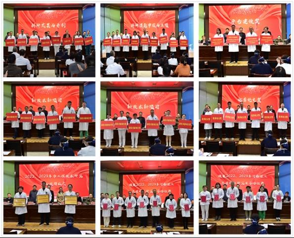 该院党委书记于拥军宣读表彰文件。为表彰2022年以来我院医务工作者在科学研究、新技术新业务等方面取得的成绩,医院按照相关文件要求,决定对6项河南医学科技奖、1项河南省教育厅科技成果奖、2项河南省医学教育优秀教学成果奖、1项焦作市社会科学优秀成果奖、1项国家自然科学基金项目申报、2项省/部级科研课题立项、93项市/厅级科研课题立项、29项科研课题结项、31项新技术新项目负责人及4项专利发明人、31篇优秀论文作者、4个学科平台建设奖予以表彰奖励。于拥军希望受到表彰的集体和个人珍惜荣誉,再接再厉,为推动医院科技发展继续做好带头作用,为提升医院核心竞争力做出更大贡献。于书记强调,科技创新是推动发展的动力,科技成果是学科、专科和先进个人等申报的基础,各科室负责人应该统筹科室发展,在科研与学科建设方面发挥表率作用,同时注重科室人才科研兴趣的引导和培养,推动医院科技创新和学科发展。