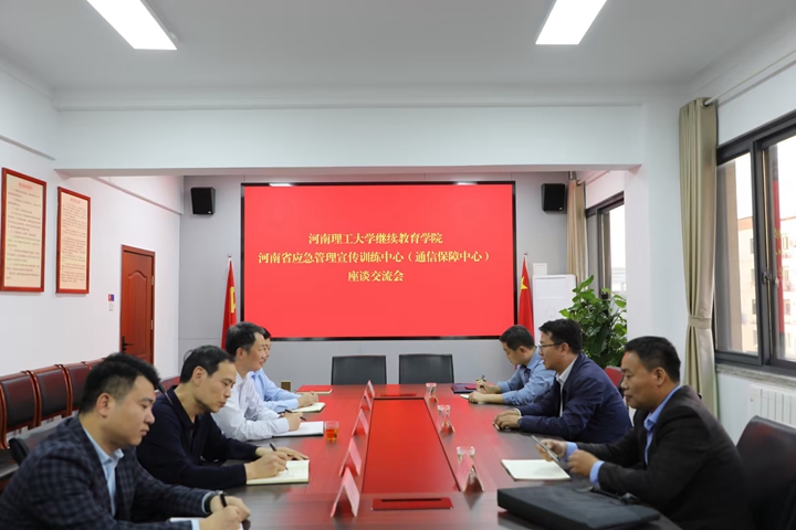 本网讯(通讯员 任秀安)为贯彻落实我校与河南省应急管理厅战略合作框架协议的有关内容,扎实推动我校在应急管理教育培训工作高质量发展,10月26日,继续教育学院党总支书记高志扬带队赴河南省应急管理宣传训练中心(河南省应急管理通讯保障中心)开展党建和业务交流活动。中心主任、党支部书记黄清华和相关负责人等出席并参加座谈交流会。高志扬首先对河南省应急管理宣传训练中心(通讯保障中心)各位领导长期以来对学院的大力支持和帮助表示衷心的感谢,对学院基本情况和前一阶段的学院领导班子调配、机构调整等情况进行了介绍,并就双方下一步党建和业务工作的开展和设想进行了交流。