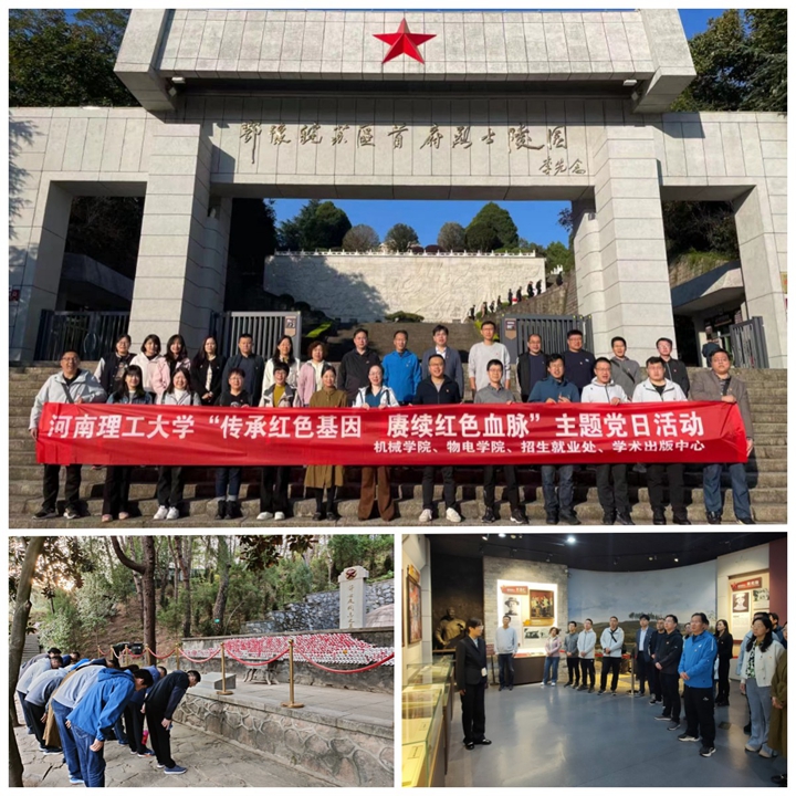 本网讯(通讯员 吴思雨 刘琳)为深入学习贯彻党的二十大精神,切实增强党性意识,坚定理想信念,凝聚团结奋斗正能量,提升担当作为精气神,10月20日至10月22日,我校机械学院、物电学院、招生就业处及学术出版中心教工党支部组织党员干部赴全国爱国教育示范基地新县,联合开展“传承红色基因赓续红色血脉”主题党日活动。