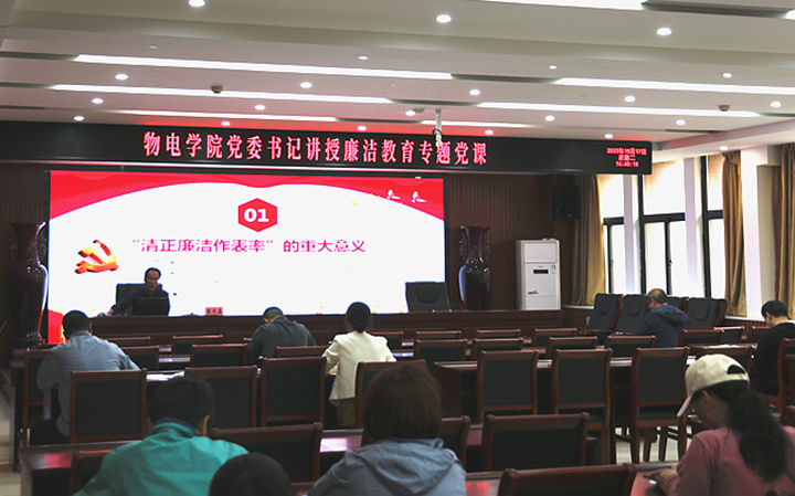 为进一步加强学院党风廉政建设,强化教工廉洁自律意识,筑牢拒腐防变的思想道德防线,努力营造教书育人、风清气正的良好氛围,10月17日下午,物电学院于综合实验楼226会议室举行廉洁教育专题党课,该院全体教工参加了本次党课。本次党课由该院党委书记张长森主讲。