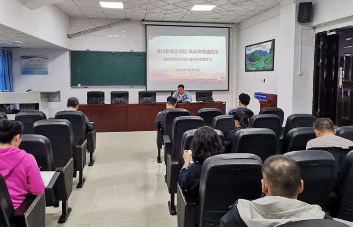 10月10日,体育学院召开党风党纪教育月动员部署会,进一步增强党员干部的廉洁自律意识,筑牢党员干部拒腐防变的思想道德防线,努力营造“党风清正、政风清明、校风清朗、教风清淳、学风清新”的良好氛围。