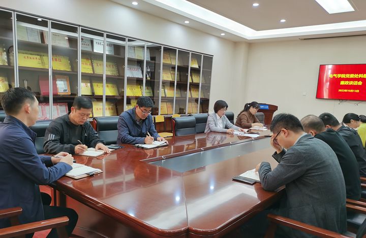 为推进清廉学校建设,营造风清气正的良好校园环境。近日,电气学院在学院215会议室开展2023年度处科级干部廉政谈话会,该院全体处科级干部参加会议。会议由该院党委书记李慧敏主持。