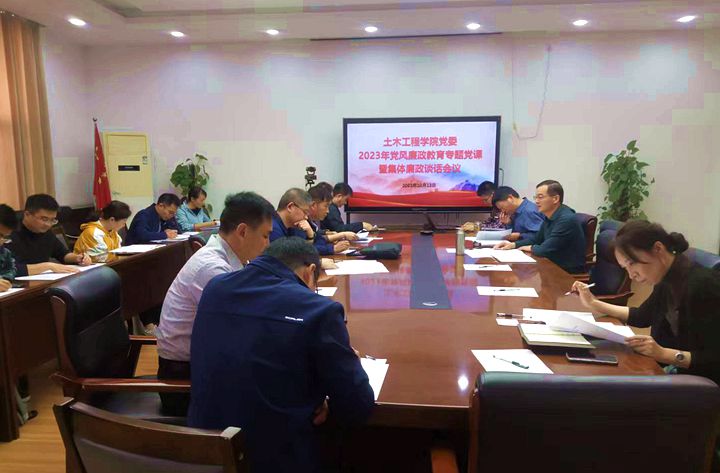 为加强学院党风廉政建设,让广大党员干部进一步学纪、明纪、守纪,10月13日下午,土木工程学院党委在该院二楼会议室召开2023年党风廉政教育专题党课暨廉政谈话会议。该院处级干部,各党支部、系(中心)和科室负责人,党员代表参会。会议由该院党委书记常玉光主持。