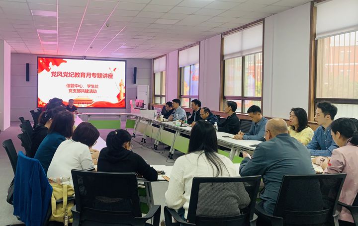 为深入学习贯彻习近平新时代中国特色社会主义思想和党的二十大精神,深化自我革命、全面从严治党,10月17日下午,信管中心、学生处党支部在二号实验楼2210会议室联合举办党风党纪教育月专题活动。活动中邀请了校纪委副书记李照修作题为《深刻领会新征程全面从严治党新部署》的专题宣讲。学生处全体党员及信管中心全体党员参加了本次专题讲座学习,会议由信管中心主任彭维平主持。
