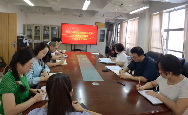 9月8日下午,学术出版中心在力行楼420室召开了2023年度处级领导班子民主生活会。全体党员干部参加会议,会议由党支部书记、中心主任茅艳主持。