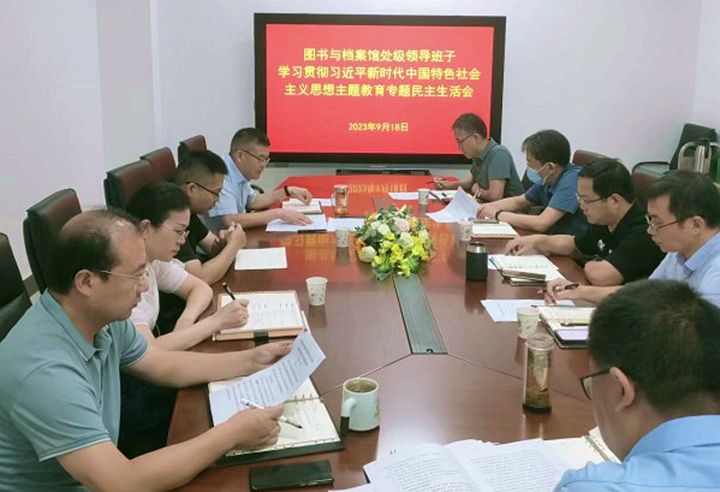 根据校党委《关于召开处级领导班子学习贯彻习近平新时代中国特色社会主义思想主题教育专题民主生活会的通知》要求,9月18日上午,图书与档案馆党总支在第二图书馆第二会议室召开处级领导班子主题教育专题民主生活会,会议由党总支书记史君锋主持,领导班子全体成员参会,学校主题教育领导小组办公室成员单位代表列席会议。