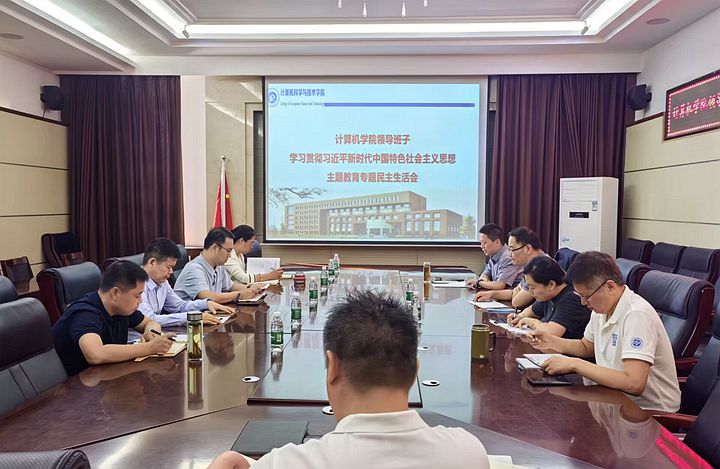9月22日上午,计算机学院领导班子学习贯彻习近平新时代中国特色社会主义思想主题教育专题民主生活会在该院217会议室召开,会议由学院党委书记许辉主持,该院领导班子成员参加会议。学校主题教育领导小组办公室成员单位代表列席会议。