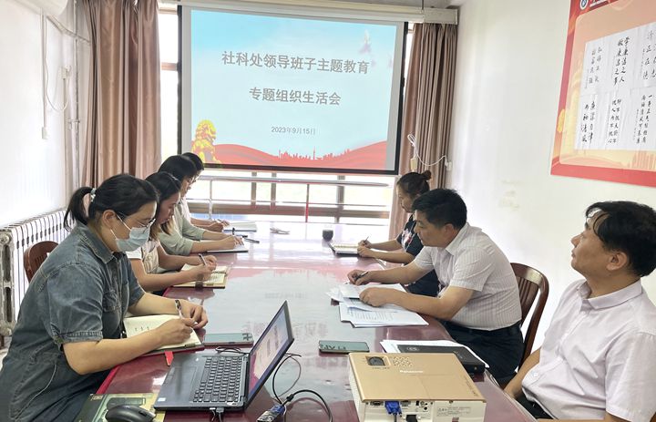 按照校党委《关于召开处级领导班子学习贯彻习近平新时代中国特色社会主义思想主题教育专题民主生活会的通知》的要求,9月15日下午,社科处党支部在力行楼414会议室召开处级领导班子主题教育专题组织生活会,会议由党支部书记张合兵主持,社科处全体党员参会。