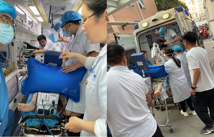 一附院接诊后立即开通绿色通道,多科室携手,上演了急性心梗救治的“教科书级”案例。其中在院外开展ECMO救治,亦开创了我市院外ECMO转运先河。
