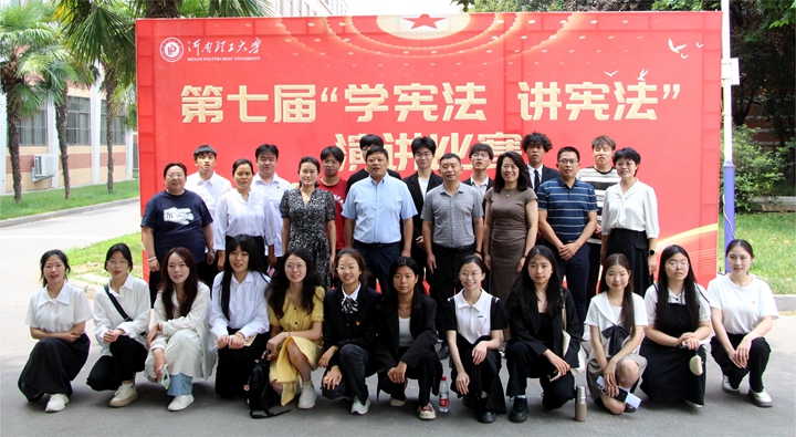 本网讯 (通讯员 刘蓝蓝)为全面学习贯彻党的二十大精神,深入学习贯彻习近平法治思想,进一步在学生中普及宪法知识,弘扬宪法精神。6月25日上午,由学生工作部(处)主办、文法学院承办的河南理工大学第七届“学宪法 讲宪法”演讲比赛在南校区心理健康教育与咨询中心举办。党委宣传部、学生工作部(处)、校团委、信访与法律事务办公室和文法学院相关人员担任比赛评委,来自各学院共24位选手参加了比赛。