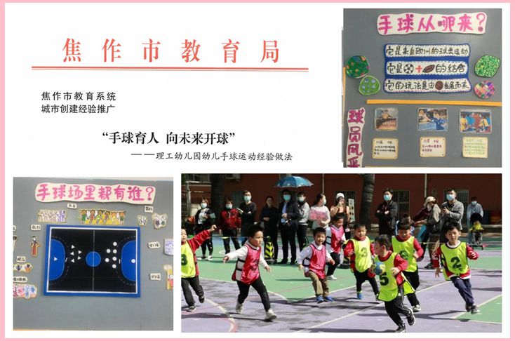 本网讯 (通讯员 杨臻)为了更好地促进幼儿身体健康及体格发育,激发幼儿运动兴趣,培养幼儿运动习惯,促进幼儿健康快乐成长。6月20日,焦作市教育局发文面向全市幼儿园推广理工幼儿园手球经验做法。