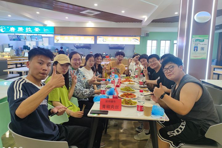 本次厨艺课开始前,后勤通过公众号发出“最喜爱菜品投票”,学生积极参与并选出心中最爱的家常菜,西红柿炒鸡蛋和青椒炒肉丝高票当选。课程当天,具有多年厨师经验的侯振彬师傅,总结自己的工作经验,一步步讲解菜品的制作,简单步骤里蕴含的丰富技巧让在场学生惊叹连连,大家一边听着讲解,一边自己动手实操。课程的最后,学林餐厅备上米饭,让大家一起品尝自己的作品。