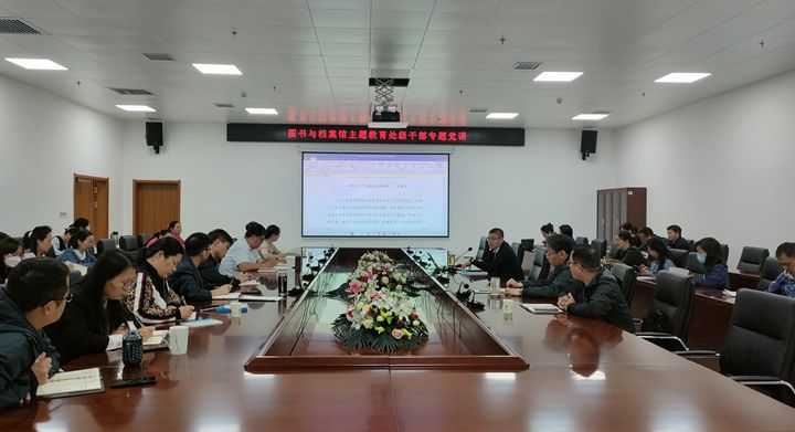 本网讯 (通讯员 司姣姣)为进一步深入开展主题教育,5月30日上午,图书与档案馆党总支书记史君锋为全体党员讲授专题党课,并组织开展第二次处、科级干部主题教育读书班学习研讨会。
