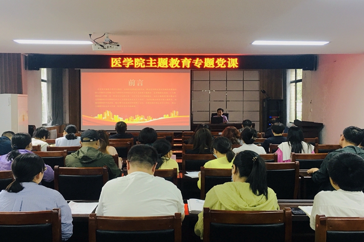 本网讯(通讯员 董明磊)5月30日下午,医学院党委书记张向锋以《在推动学习贯彻习近平新时代中国特色社会主义思想走深走实上下功夫》为题,在医学院学术报告厅为全体教职工党员讲授主题教育专题党课。