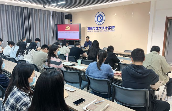 本网讯 (通讯员 李盛楠/文 史新慧/图)为扎实推进学习贯彻习近平新时代中国特色社会主义思想主题教育,牢牢把握“学思想、强党性、重实践、建新功”的总要求,教育引导全体党员深刻认识开展主题教育的重大意义,5月23日下午,建艺学院党委书记张建新为全体教工党员与学生党员代表讲授主题教育党课。