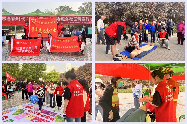 为进一步普及应急安全知识,全面贯彻落实总体国家安全观,增强居民群众国家安全意识和素养,在第八个国家安全教育日到来之际,应急管理学院青年志愿者协会积极响应共青团焦作市委“社区青春行动”号召,向社区群众普及国家安全知识与应急安全自救技能。 活动开始前,宣讲团成员分工明确,团结协作,有条不紊地筹备前期准备工作,布置宣讲场所。在活动过程中,通过实践教育、发放国家安全宣传单和宣讲团成员给广大群众讲解了国家安全法律法规、日常应急可以用到的心肺复苏急救法以及海姆利克急救法,指导群众进行实操演练,巩固应急安全知识。同时,宣讲团成员根据不同群体的需求,向社区群众主要介绍了生活中常见的绳结,如:八字结、称人结等。宣讲团成员组织儿童参与垃圾分类互动小游戏,养成良好行为习惯。宣讲团成员创新宣讲形式,让群众听得进、弄得懂、记得牢,努力让国家安全和应急知识“飞入寻常百姓家”。 |