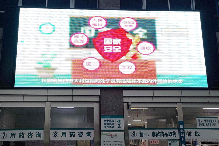 利用电子屏滚动播放宣传标语,要求师生共同学习,为维护国家安全创造了良好的法治氛围。