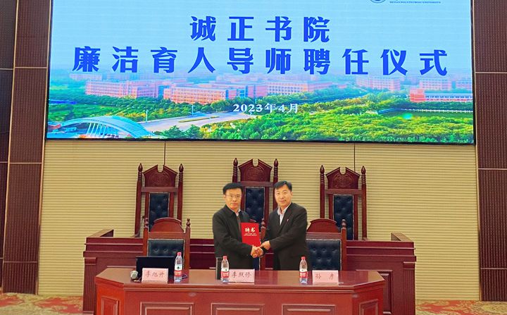 本网讯 (通讯员 杨晓硕 刘万里)为深入学习宣传贯彻习近平新时代中国特色社会主义思想和党的二十大精神,落实党中央关于加强新时代廉洁文化建设的意见,引导书院师生进一步夯实清正廉洁思想根基、厚植廉洁奉公文化基础、培养廉洁自律道德操守、弘扬崇廉拒腐社会风尚,不断增强廉洁修身意识,4月12日上午,诚正书院于北校区模拟法庭举行创建清廉书院启动仪式,校纪委副书记李照修、诚正书院党委书记、院长孙彦参加仪式,诚正书院全体教职工和百余名学生代表参加启动仪式,书院党委副书记李旭升主持。