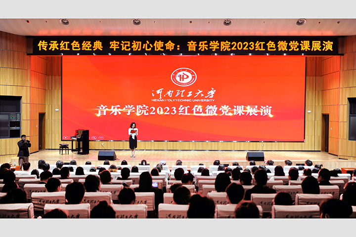 本次微党课展演选取了6个经典红色作品,将党史教育、思政元素等融入现场党课、作品解析和创作表演,充分表现了思想的深度和艺术的魅力,彰显了学习党史、传承经典,汲取奋进力量、赓续红色血脉的主题。6名教工党员的主讲和师生的表演,带大家共同领略了6堂精彩的党课:理论舞蹈系教工党支部孔娟主讲“以青春热血 颂爱国赞歌——混声合唱《五月的鲜花》”,用悠扬歌声缅怀追忆为民族血脉延续而奉献青春热血的青年;声乐系教工党支部朱艳主讲“星星之火永不灭,革命精神代代传——再唱《毛委员和我们在一起》”,回忆干部群众同甘共苦的光辉岁月,歌颂党同人民群众始终血肉相连;器乐系教工党支部韩雪主讲“寻访红色印记、传承红色基因—《山丹丹开花红艳艳》”,凝聚着老一代艺术家心血的经典歌曲情感真挚,以生生不息的动人旋律诠释了“延安精神”;器乐系教工党支部张冬莎主讲“唱红色经典,铭记百年党史——歌曲《十送红军》”,情景交融、催人泪下,歌颂了战火纷飞中为革命事业奉献生命的前辈,展现了红军将士与百姓的鱼水情深;理论舞蹈系教工党支部赵晓宇主讲“回首来时路,阔步新征程——原创舞蹈《前行》”,号召大家勿忘屈辱苦难,为中华民族伟大复兴一往无前;理论舞蹈系教工党支部王芳主讲“点燃· 梦”,以“中国梦”为主题,讲述河南理工大学教师点燃学生梦想,激励理工学子踔厉奋发、笃行不怠,为实现国家第二个百年奋斗目标贡献青春力量。