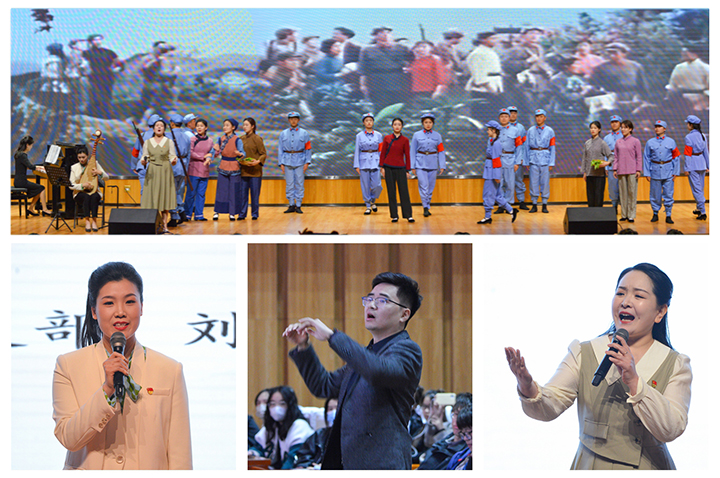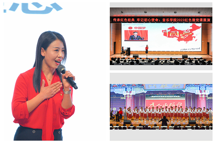 音乐学院精心打造的微党课展演,紧密围绕红色主题,充分发挥专业特色,将红色歌曲所蕴含的红色文化有机融入党课教学过程中,用艺术手法传承红色基因,彰显了艺术浸润+课程思政的有效融合,让经典红歌“唱起来”,革命故事“讲起来”,教育引导党员师生坚定不移听党话、跟党走,厚植爱党、爱国、爱社会主义的情怀,为建设国内一流特色高水平大学、全面建设社会主义现代化国家建功立业。