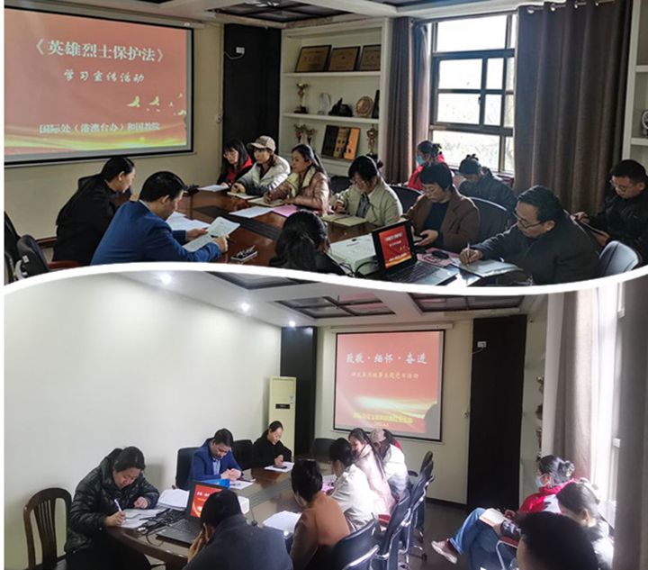 4月4日下午,全体教职工齐聚力行楼226会议室,集中学习了《英雄烈士保护法》。根据《英雄烈士保护法》,国家设立烈士纪念日,倡导宣传弘扬英雄烈士事迹和精神,要求相关部门做好烈士遗属抚恤优待,通过法律条文保护烈士合法权益等。一个有希望的民族不能没有英雄,一个有前途的国家不能没有先锋。此次活动传递了红色正能量,形成人人崇尚英烈、学习英烈的浓厚氛围。