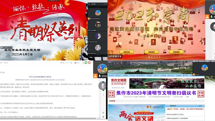 4月3日上午,国际处(港澳台办)和国教院全体教职工根据《关于开展“2023·崇尚·清明祭英烈”主题教育活动的通知》,登录“焦作文明网”和“中华英烈网”,开展网上鞠躬、献花、敬酒、上香和敬献花圈等祭扫活动,并为烈士留言。