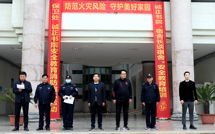 本网讯(通讯员 陈鑫)为切实抓好书院的安全教育工作,增强学生的消防安全意识及应急救援能力,提升宿舍长综合素养,3月21日下午,诚正书院联合保卫处于奋飞广场举办安全教育消防演练活动。焦作市解放区民生派出所副所长张丽,校保卫处、学生处、诚正书院相关负责人及书院180余名宿舍长代表参加本次活动,活动由诚正书院党委副书记李旭升主持。
