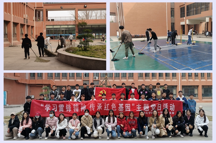 在毛泽东等老一辈革命家为雷锋同志题词60周年来临之际,该院党委组织学生党支部举办主题党日活动,引导广大学生尤其是学生党员树立崇高理想追求,践行社会主义核心价值观。活动现场,学生党员们积极打扫综合实验大楼。他们挥汗如雨,热情澎湃,干劲十足,平时的卫生死角都被打扫的十分干净,各种垃圾也被清理出去,为广大教工和学生营造了干净舒适的教学、办公和学习环境。