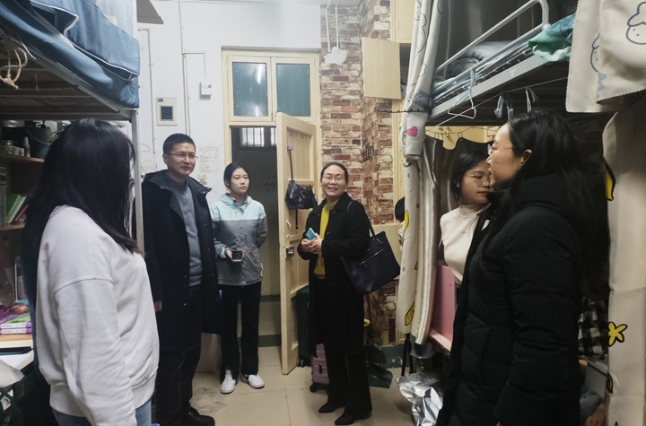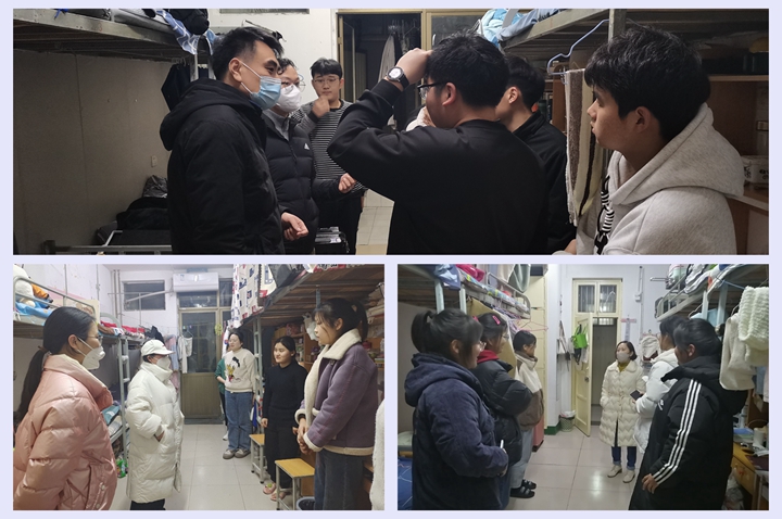 为进一步了解学生返校情况,加强安全管理,2月12日晚,该院处级干部、全体辅导员深入学生宿舍开展走访慰问。走访过程中,老师与学生亲切交谈,仔细询问了学生的返校情况,听取了学生的实际诉求,查看了学生宿舍的卫生环境和用电安全等情况,叮嘱同学们要树牢并自觉践行安全第一理念,强化安全意识,注意在校期间的用电,饮食等各项安全事项,鼓励同学们要以积极的心态站在新的起点,迅速调整好状态,做好新学期新规划,以饱满的热情积极投入到新学期学习生活中。学生们纷纷表示,深切感受到了学校和学院的关怀与温暖,将严格遵守学校规定,以实际行动维护宿舍安全环境。