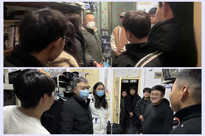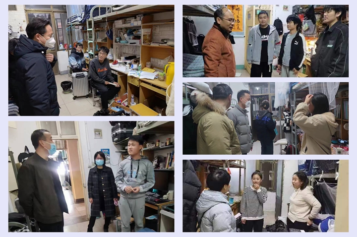 该院处级干部带队分为3组,走访了竹园五号、竹园一号、竹园二号、兰园二号宿舍楼,与学生亲切交谈,仔细询问了同学们假期生活、学习情况以及返校途中的点点滴滴,了解宿舍供暖、热水、结课备考情况。交流过程中,对于同学们比较关心的问题,积极倾听意见建议并逐一予以详细解答,同时叮嘱同学们有任何问题都可以第一时间寻求辅导员帮助。