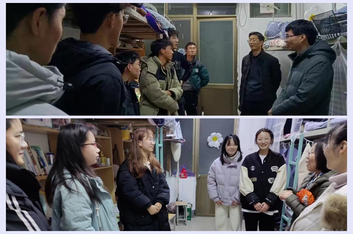 走访过程中,师生进行了亲切交流,了解同学们的返校方式及安全防护措施,并询问了大家的寒假生活与学习情况;叮嘱大家返校后仍要做好自身健康的第一责任人,保持宿舍卫生,营造良好环境,注意安全问题等。在毕业班宿舍,大家详细询问了学生的考研及就业情况,针对不同问题给予合理的帮助与建议,并祝愿大家取得好成绩;在低年级宿舍,各位老师亲切的问候了大家的学习生活情况,希望大家树立目标,做好规划,争取更大进步;在研究生宿舍,大家详细询问了学生学习与科研情况,并就面临的困难与困惑从专业角度给出指导。同学们对学院领导老师的慰问关心表示感谢,大家纷纷表示在返校的过程中时时处处都感受到了学校、学院的关心与关爱,未来一定会努力学习,以最好的精神面貌迎接新学期。