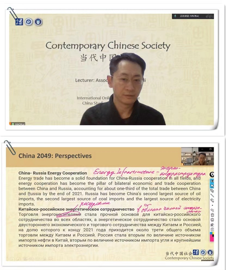 本次获批的课程项目由外国语学院郝葵博士主讲,以线上直播的形式面向俄罗斯伊尔库茨克国立理工大学学生开放选修。课程于2022年9月开课,12月底结束,以英文为主要授课语言,俄文为辅助授课语言;课程内容涵盖当代中国的政治、经济、文化、社会治理、中俄合作等主题,受到俄方师生及当地社会的广泛好评。