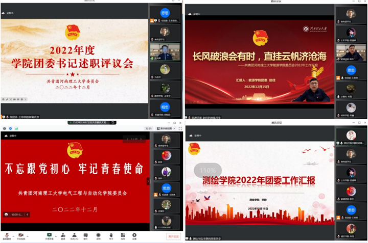 本网讯 (通讯员 王思思)为全面贯彻落实党的二十大精神及习近平总书记关于青年工作的重要思想,深入推进学校共青团改革,结合团中央《关于印发〈基层团组织书记述职评议考核暂行办法〉的通知》和全面从严治团要求,激发基层团组织活力,提高工作部署的落实成效,12月15日,校团委通过线上会议方式召开2022年学院团委书记述职评议会,校团委全体成员参会。宣传部、学工部、研工部、招就处相关负责人应邀担任本次评议会评委。