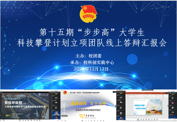 本网讯 (通讯员 莫小华 许晟瑞)为进一步引导我校学生提升科技创新意识,增强实践动手能力,12月13日下午,我校第十五期“步步高”大学生科技攀登计划立项团队答辩汇报会在腾讯会议线上举行。
